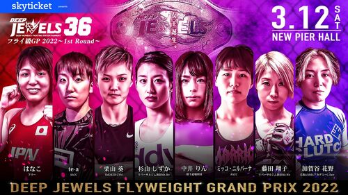 skyticket Presents DEEP JEWELS 36 ~フライ級GP 2022 1ST ROUND~ 新設されるDEEP JEWELSフライ級(56.7kg以下)のベルトを賭け8選手によるトーナメントが決定!! 何と最強女王・中井りんが参戦、エース・杉山しずかを始めレスリングエリートで期待の新人・は…
